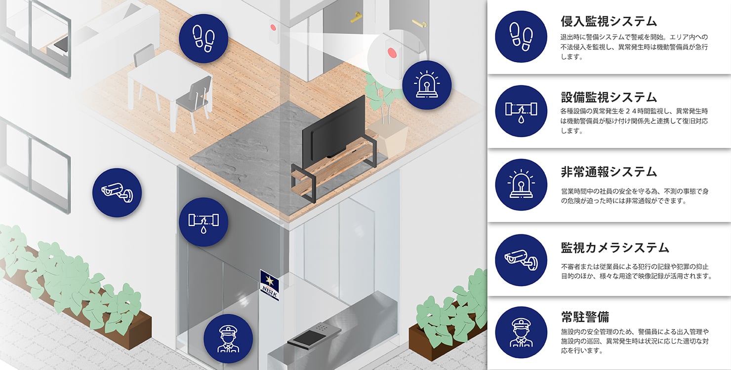 警備に必要な機器の取り付けを行います。 設置工事の完了後、点検に必要な鍵をお預かりし、警備を開始します。